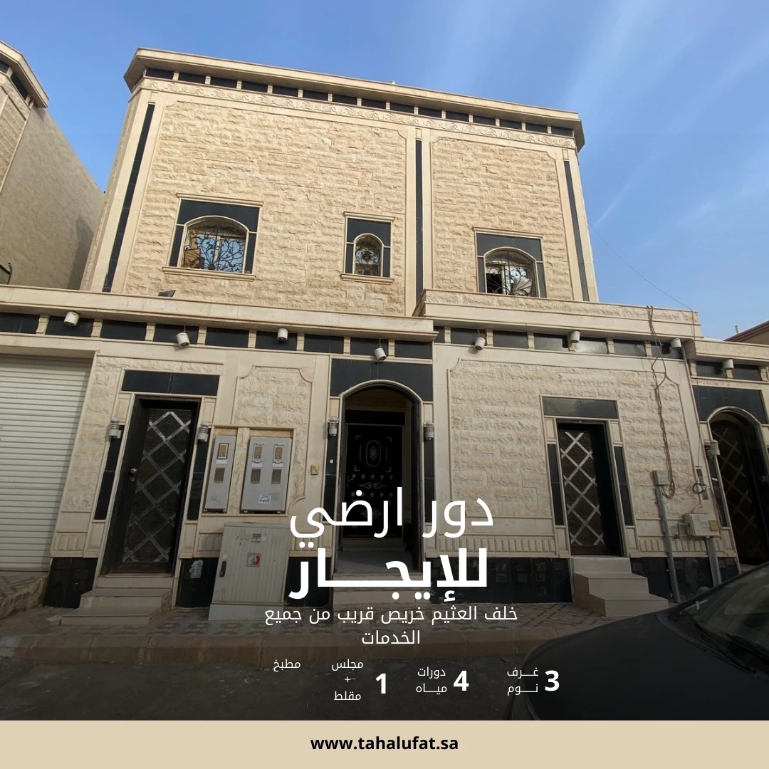 دور ارضي في النظيم مساحة البيت 350 دور ارضي ثلاث غرف نوم منها ماستر اربع دورات مياه مجلس ومقلط وصالة ومطبخ غرفة سواق خلف العثيم خريص قريب من جميع الخدمات